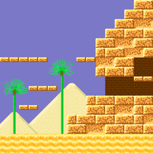 For the final game, I want to have 5 worlds, each with 8 levels and a boss fight. World 1 is the forest world featured in the demo. World 2 (Sandy Ruins) will be an ancient Egypt inspired desert world. Here's a sneak peek: