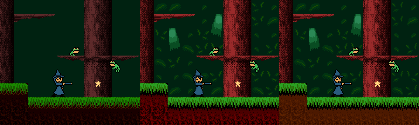 Here's a few other things that ended up on the cutting room floor: a cauldron meant for an intro cutscene, a fly meant as a random environmental detail (frogs would try to eat them), an alternate "casual" outfit for Natalie, Natalie riding her broom Boris (meant for an unimplemented stage intro cutscene), Natalie doing a cute twirl (for an unimplemented stage outro cutscene), and a slime enemy I never got around to programming in. I really like how the twirl animation came out, it's a shame I didn't end up using it in the demo.