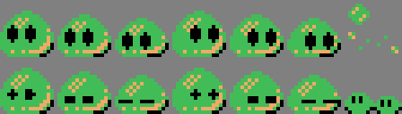 After that I made the first enemy sprite - the frog. Originally it was supposed to attack with its tongue, but I never got around to implementing it. I made a mockup GIF to workout the animation for the frog (including the scrapped tongue attack), here it is: